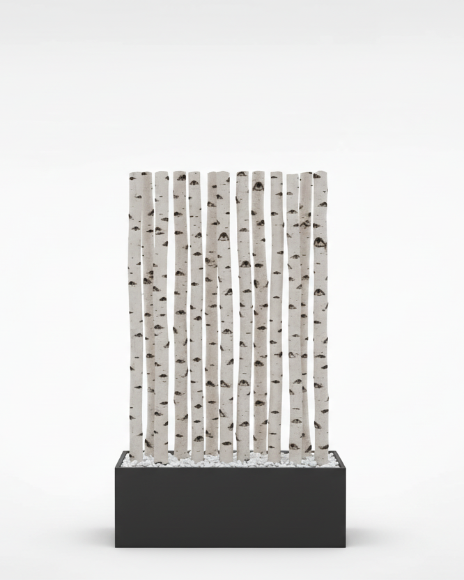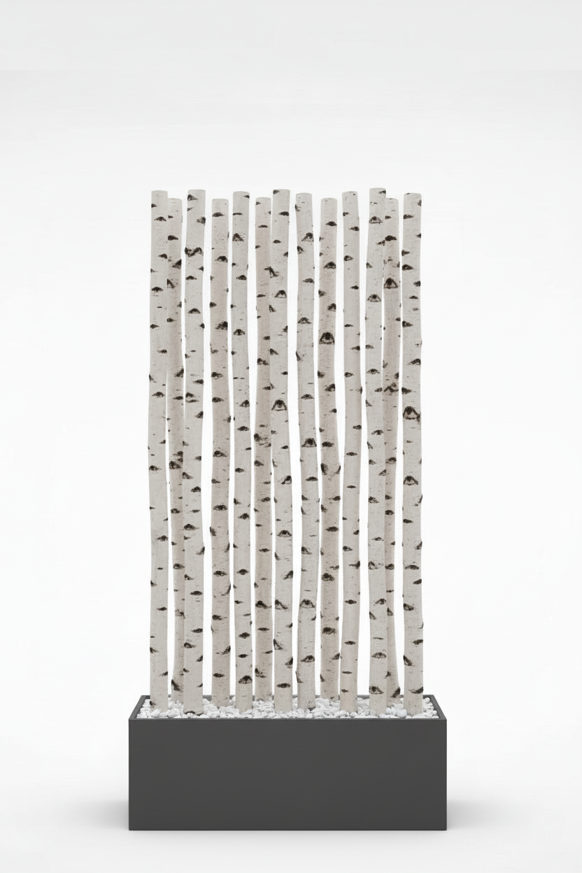 Unser Raumtrenner aus Birke bringt echtes Naturgefühl in Deine Räume – modern, nachhaltig und absolut einzigartig. Gefertigt aus massiven Birkenstämmen und eingefasst in einen stabilen Holzkasten wird jeder Raumteiler zum echten Blickfang.