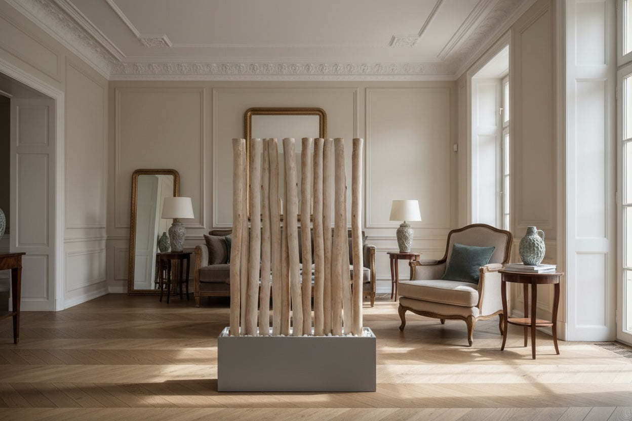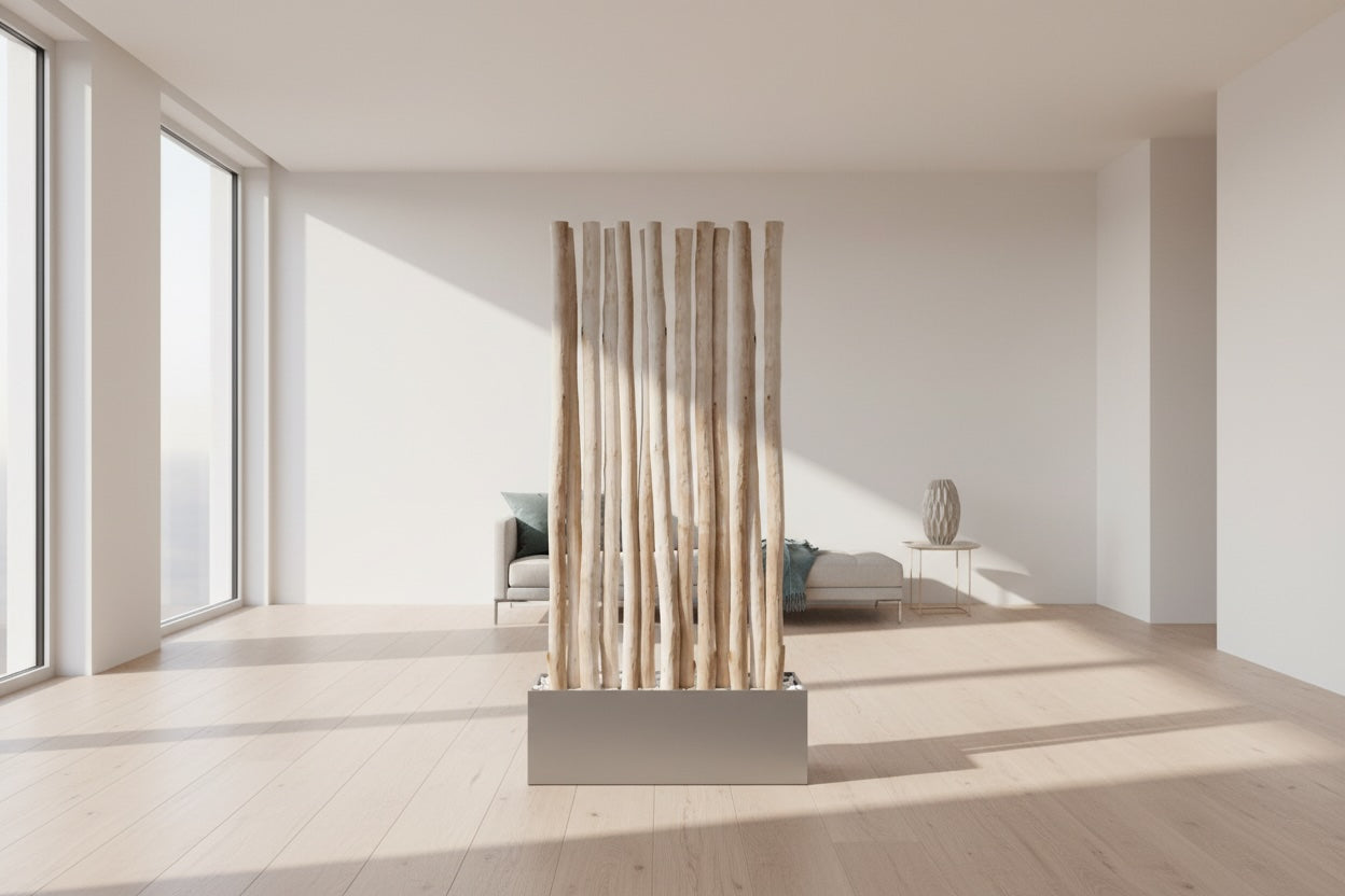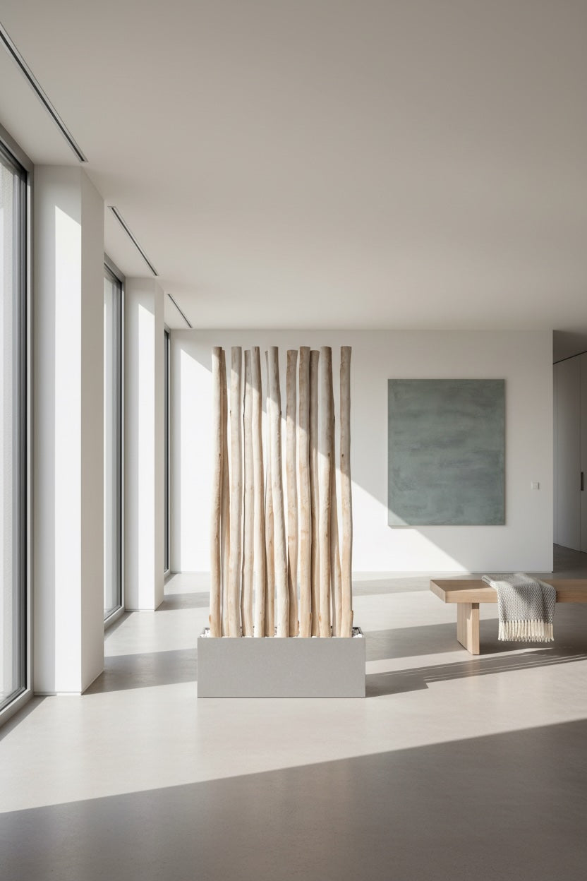 Hol Dir ein Stück Natur nach Hause – mit einem Raumtrenner aus Baumstämmen, der Räume trennt und gleichzeitig verbindet.