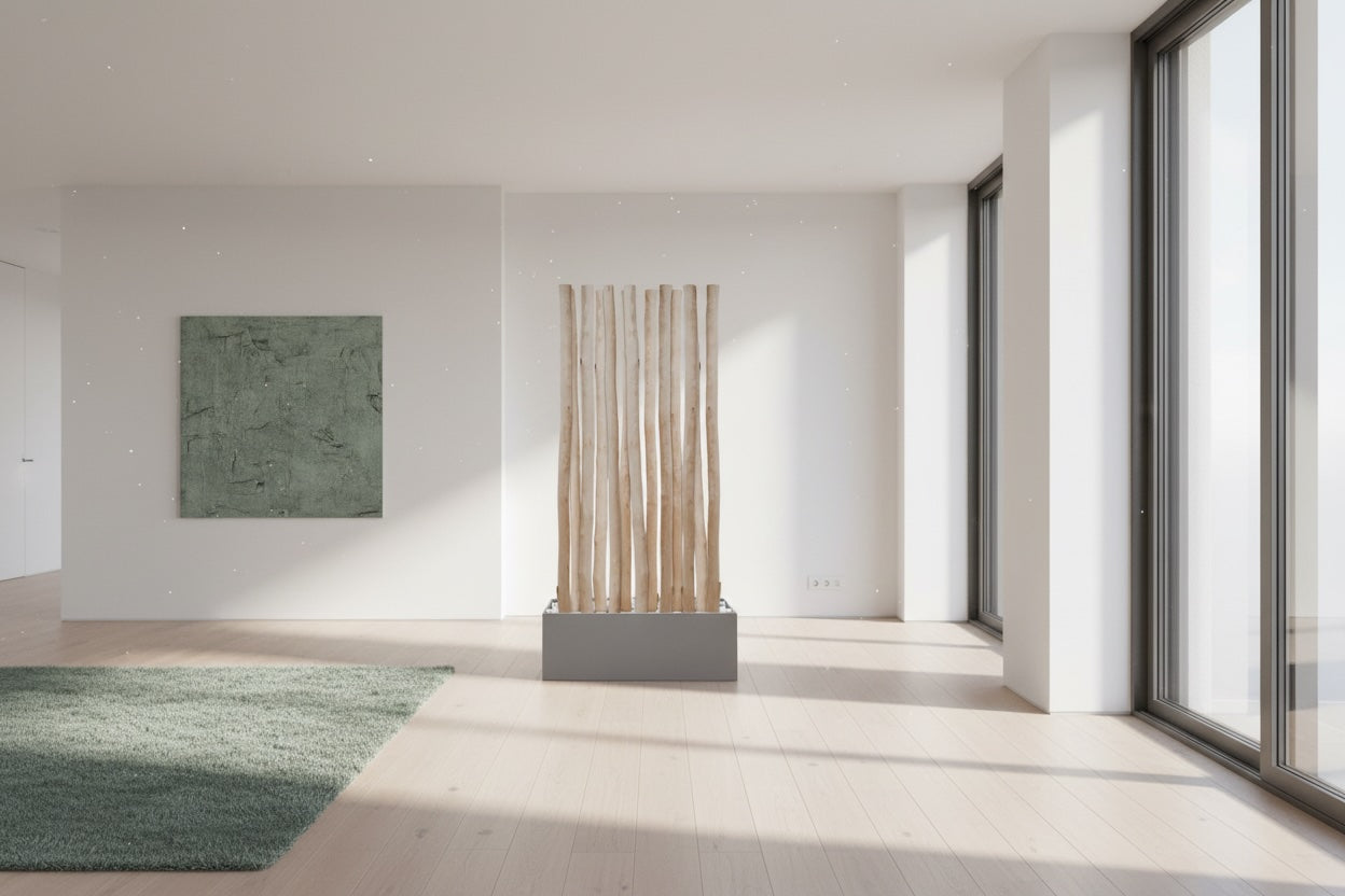 Ob Wohnraum, Büro, Ladenfläche oder Gastronomie: Dieser Raumteiler verbindet Design mit Natürlichkeit und sorgt für Struktur, ohne den Raum zu erdrücken.